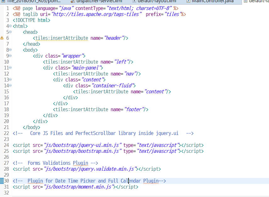/WEB-INF/tiles/default-layout.xml을 복사해야함