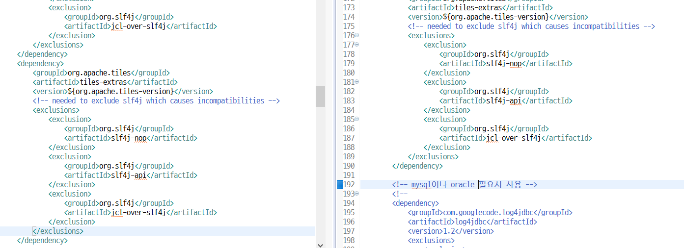 Tiles의 jar와 Slf4j를 하나의 프로젝트에 같이쓰면 오류가 발생하기 때문에