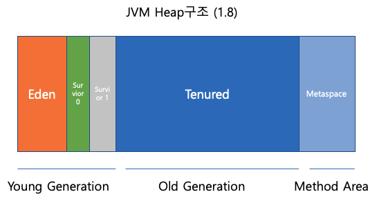 Metaspace : 기존 perm영역을 대체하여 OS의 여유공간안에서 동적으로 크기를 조정.