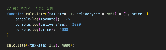 함수를 쓰는 작업을 하다보면, 들어온 값의 여부를 체크하거나 default값 설정등의 행위를 해야하는데, 매개변수에 오브젝트를 선언해두고 default값을 선언하여 사용할 수 있다. 예를 들어, 상품 결제를 하게되었을때 default 값을 설정해두면 혹시라도 매개변수를 잊어서 에러가 나거나 혹은 상수로 디폴트값을 두고 관리하는 수고를 줄일 수 있다.