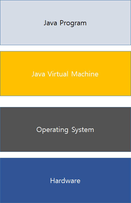 Java Virtual Machine(JVM)은 운영체제에 상관없이 자바 프로그램을 실행하기 위한 가상 머신이다.