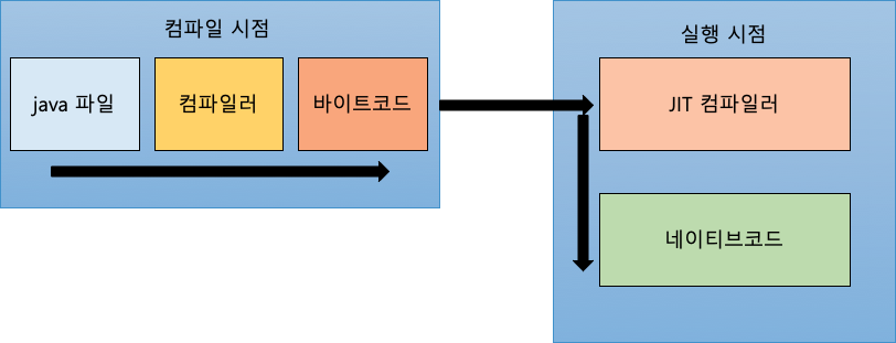 바이트 코드를 실행하는 인터프리터, JIT 컴파일러가 존재