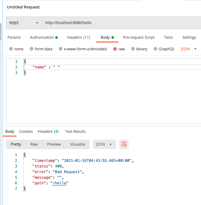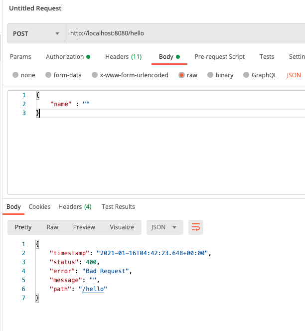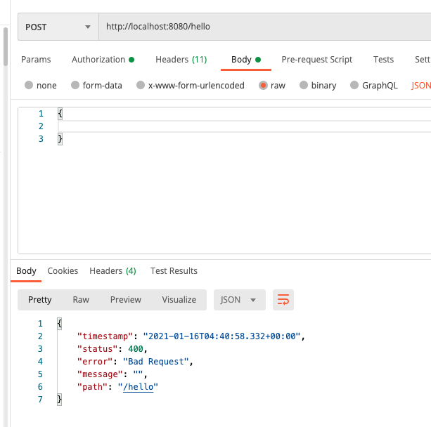 값을 보내지 않았을때 400 에러가 떨어집니다.