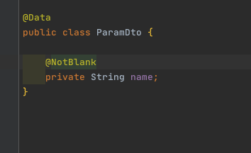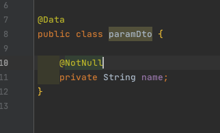 Body의 내용을 받을 Dto를 만듭니다. 처음에는 NotNull 어노테이션을 붙입니다.