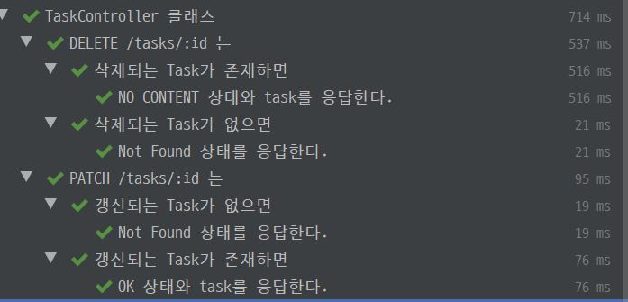 🎯 요구사항 Todo API 테스트 작성하기 1. Task 모델 테스트 2. TaskService 테스트 3. ToDo 생성하기 - POST /tasks 4. TaskController 유닛 테스트 5. TaskController MockMVC 테스트 6. HelloController 유닛 테스트 7. HelloCont..
