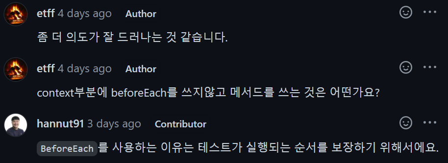 - 2주차에 배웠던 것 Describe-Context-IT 패턴을 다양하게 적용하는데 쉽지 않았던점