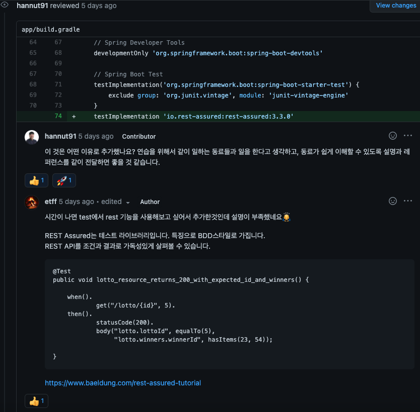 이번주도 ATDD는 생각하고 하지는 못했다. Rest-assured 라이브러리는 추가했지만