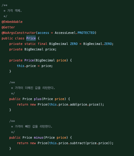 원시값을 포장하여 VO로 만들기. 지난주에 해보고 싶었던 것인데 이번주에는 가격 객체를 만들어서 적용했다.
