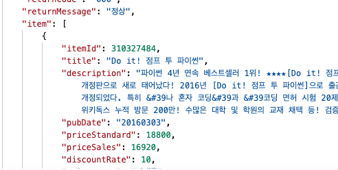 API 키가 필요한데 도서 인터파크로 들어가서