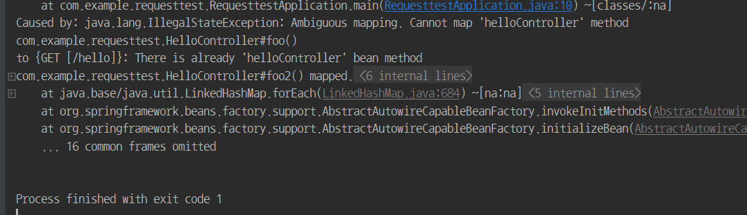 하지만 핸들러 메서드를 검증하는 validateMethodMapping에서 중복된 메서드를 발견하게 되고
