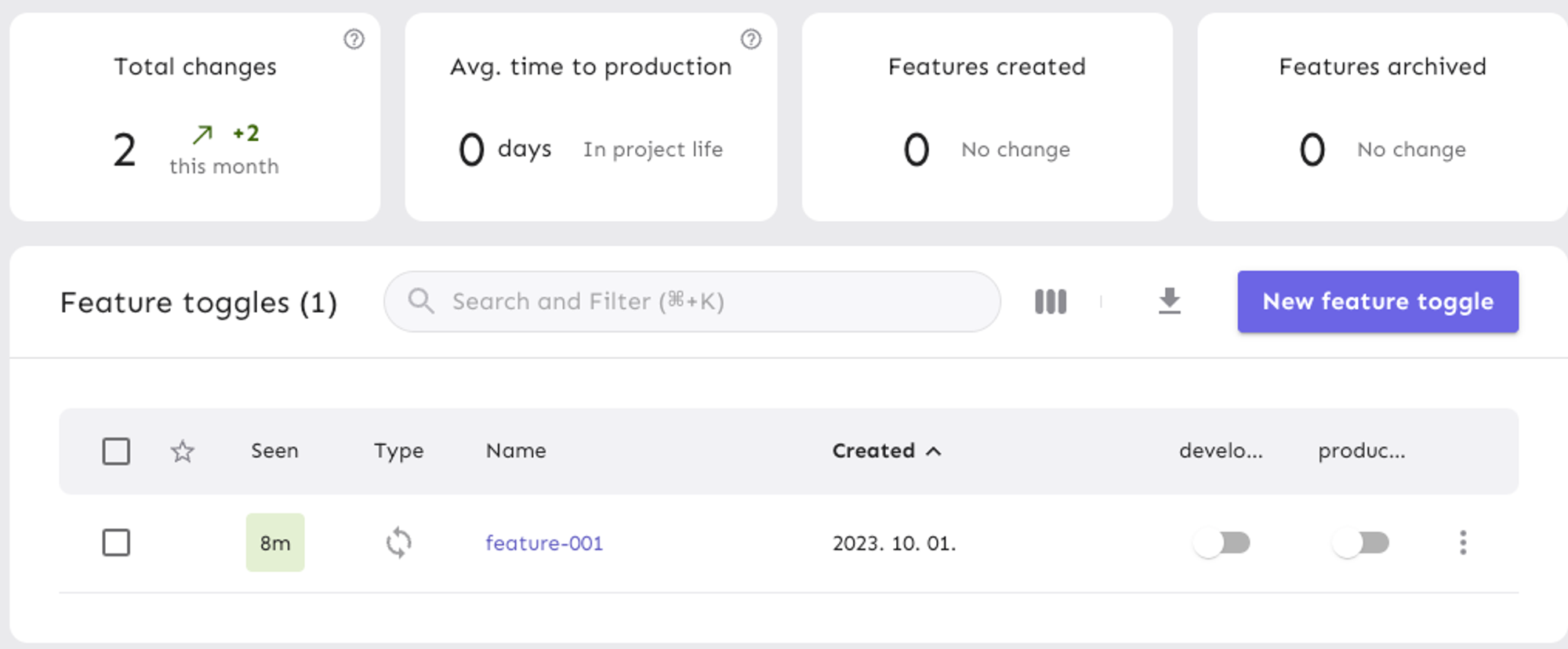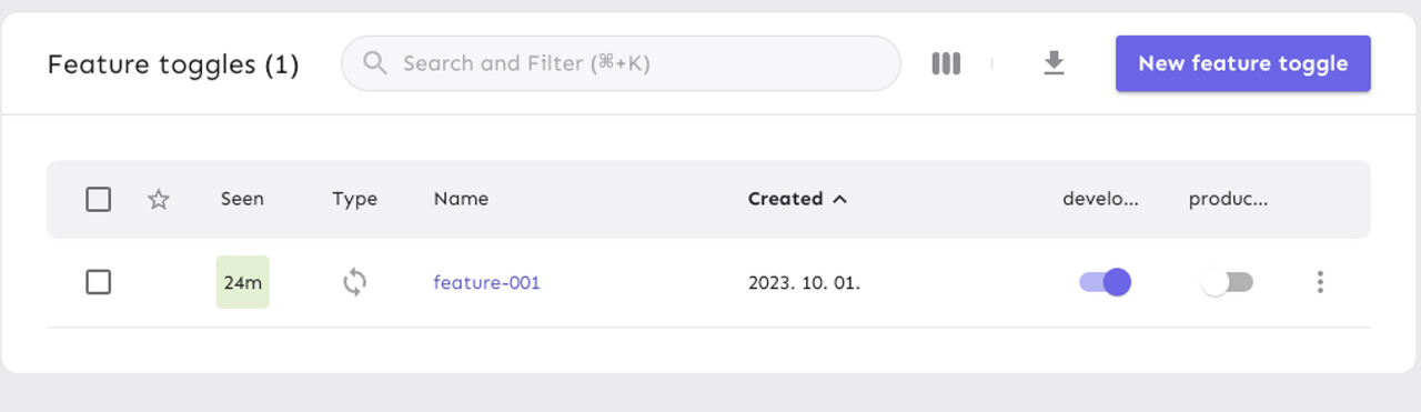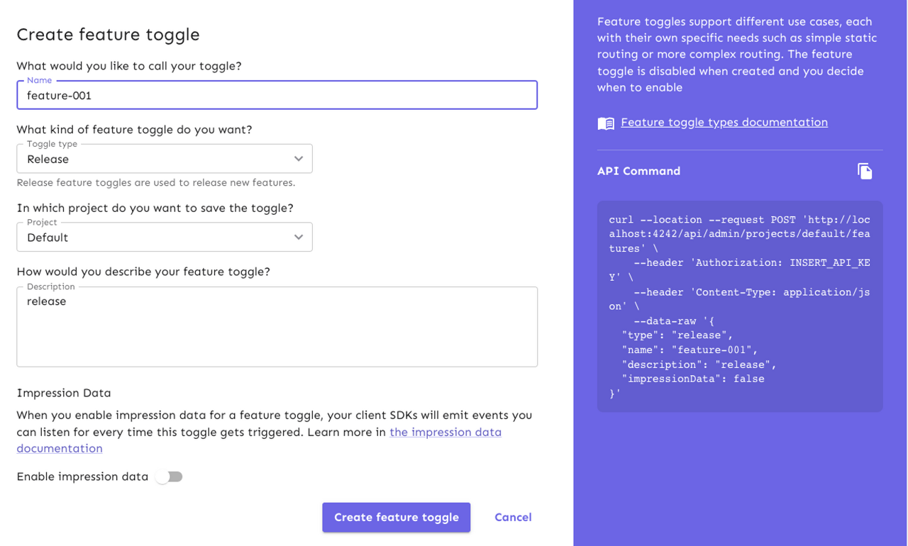 feature를 설정하려면 toggle 생성을 누른다.