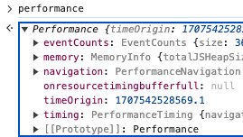 웹 사이트 성능을 측정하는 데이터를 제공한다. 언제 이벤트가 실행되었는지 확인할 수 있다.