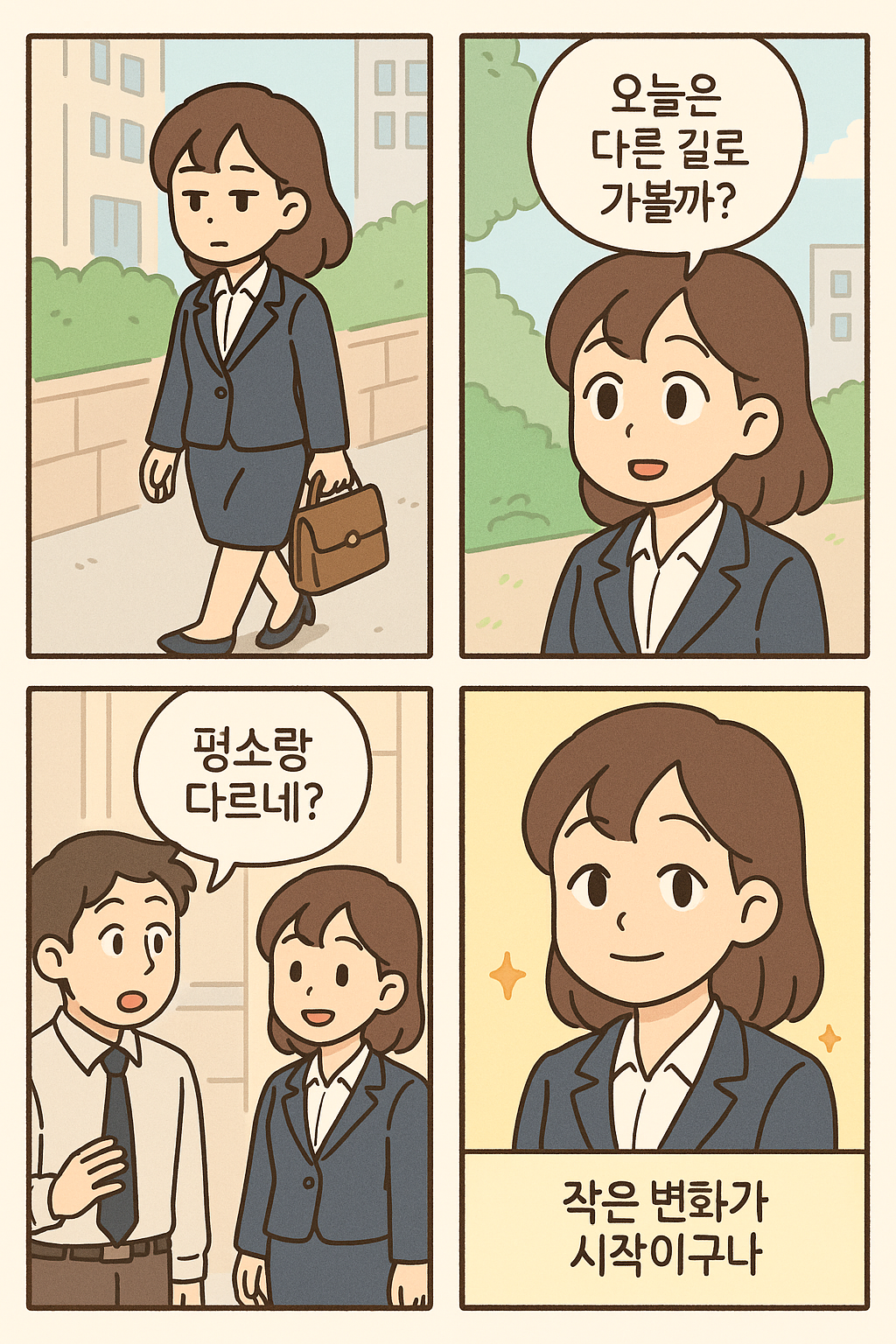 변화는 멀리 있는 거대한 목표가 아니라, 지금 이 순간의 작은 행동에서 시작된다고 한다.